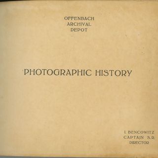 The second object is a wartime album containing 46 tipped-in photographs showing daily work activities of the Monuments Men at the Offenbach Archival Depot, one of three principal collecting points for cultural treasures and works of art looted by the Nazis during World War II. Monuments Man Corporal Rouben Sami received this album from Monuments Officer Captain Isaac Bencowitz, Director of the Offenbach Archival Depot, in recognition of Sami’s work at that facility. The Rouben Sami album now joins the list of other known albums at the Algemeen Rijksarchief in The Hague; at Yad Vashem in Jerusalem; at the New York Public Library in New York City; and at the National Archives in College Park, Maryland.